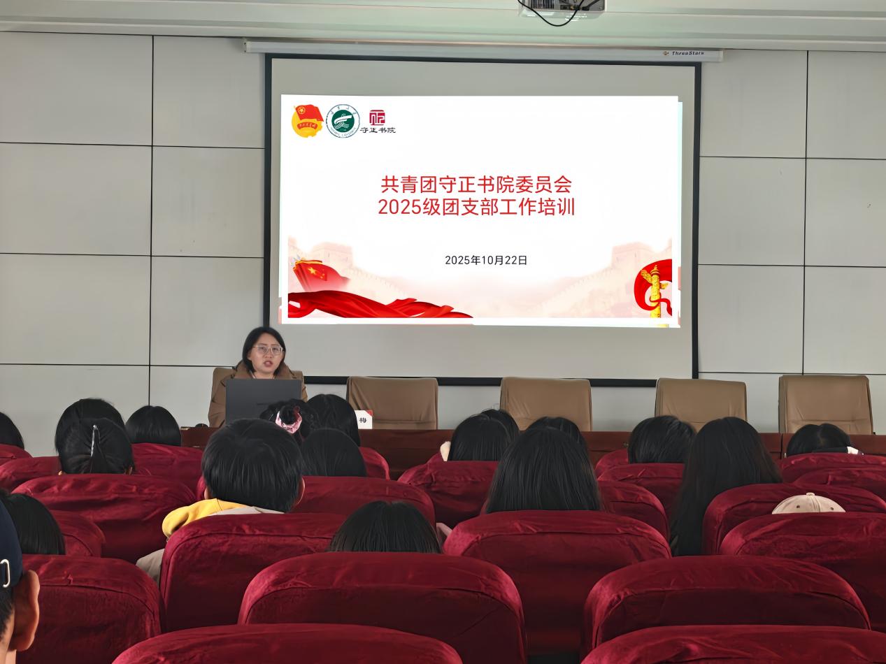 2025年10月24日为促进2025级团干部建设,推动书院共青团工作高质量发展,10月22日下午,守正书院团委于曾宪梓楼三楼报告厅开展2025级团干部工作培训会,全体2025级团干部委员参加,培训由团委书记陶雪梅主持。陶雪梅老师首先向参加培训的同学介绍了书院团委的基本架构。其次,又向大家介绍了团干部书记、组宣委员等的工作职责。最后,陶老师就团干部日常工作方式方法和注意事项进行了讲解。团干部是共青团工作和活动的基本单位,是团的最基层一级组织,也是密切联系团员青年的基层组织。明确团干部各委员职责,加强对团干部工作的培训和指导,将有助于团干部更好地服务团员青年。此次会议有助于2025级团干部明晰职责、掌握方法,快速进入工作角色并提升履职能力,推动团干部形成高效合力,为守正书院工作筑牢组织基础,助力高质量发展