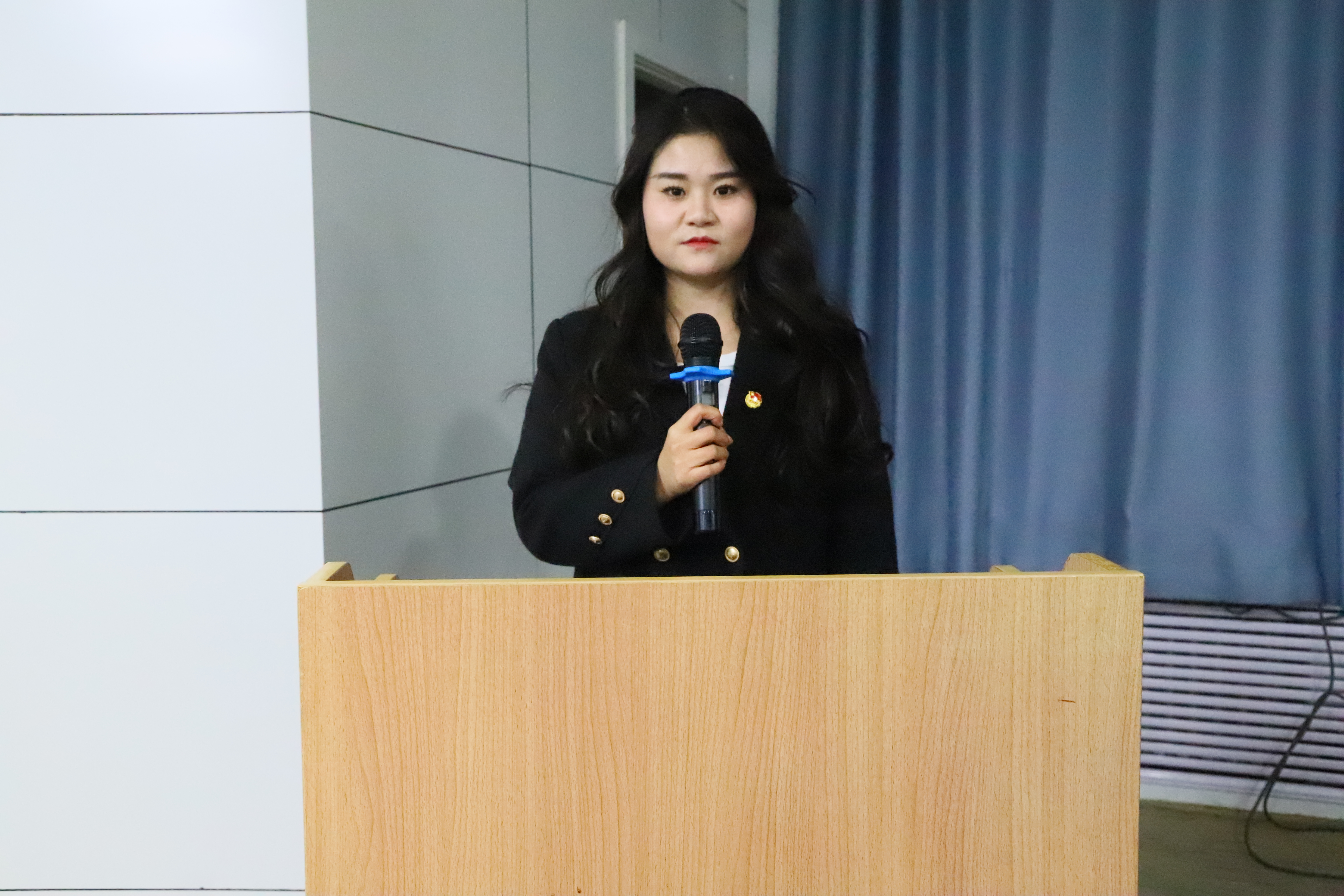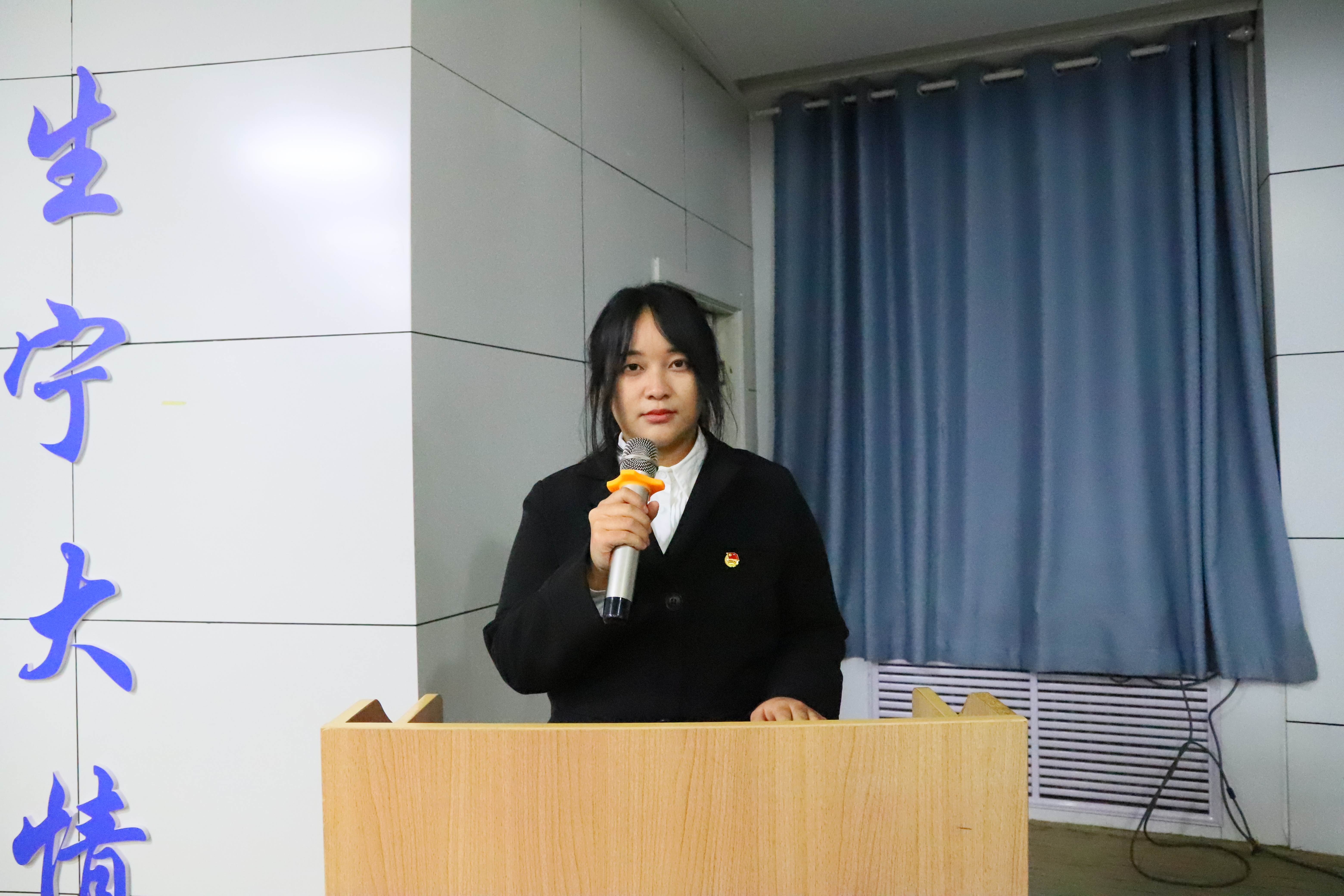 守正书院入党积极分子代表,外国语学院2024级英语笔译专业王萧慧同学发言。强调了中国共产党在中国百年奋斗征程中的核心作用,鼓励新时代青年将个人成长与国家发展相结合,坚定理想信念,积极追求进步。