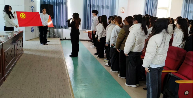 仪式在庄严的国歌声中拉开序幕。仪式上,王潇老师宣读了本学期新发展团员名单。团委副书记刘佳睿为新发展团员颁发团员证、佩戴团徽。团委副书记朱思萱带领全体新发展团员面向团旗进行宣誓。团委副书记段思佳向新发展团员宣读了《团章》中团员的权利和义务的具体内容。新发展团员代表张超越进行发言,表达了加入团组织的喜悦和郑重承诺。