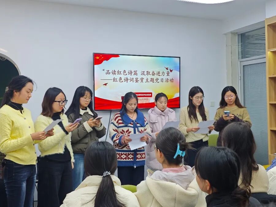 为深入学习贯彻习近平新时代中国特色社会主义思想和党的二十届四中全会精神,进一步传承红色基因、厚植爱国情怀,引导青年党员从红色经典中汲取精神养分,2025年12月10日,守正书院中文研究生学生党支部在曾宪梓楼119会议室开展“品读红色诗篇 汲取奋进力量”红色诗词鉴赏主题党日活动。支部书记史春燕与全体党员参加了活动。