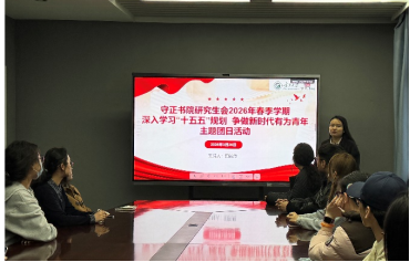 3月26日,守正书院研究生会功能性团支部于曾宪梓楼218开展“深入学习‘十五五’规划 争做新时代有为青年”主题团日活动。活动由组织委员田锐晗主持,全体团支部成员参加。