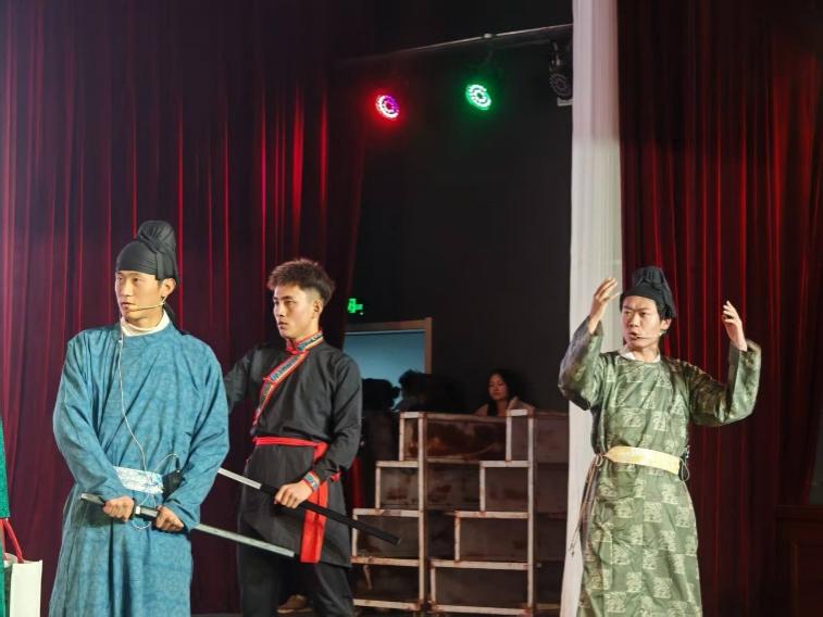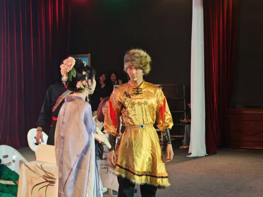 为还原历史风貌、呈现最佳舞台效果,三方团队历经数周潜心筹备,各展所长、通力协作。“小石榴”宣讲团发挥思想引领优势,牢牢锚定历史脉络中华民族团结与家国情怀的核心主线,让剧目立意更显深刻;雅寒历史文化社深耕史料,对唐贞观年间唐太宗与铁勒诸部会盟的灵州盛会史实反复考证,从剧情设计到服饰道具、场景细节严格把关,确保历史真实性与艺术感染力兼具;雨巷文学社则以细腻笔触打磨台词,用生动鲜活的语言赋予角色灵魂,让情感表达更显真挚动人。