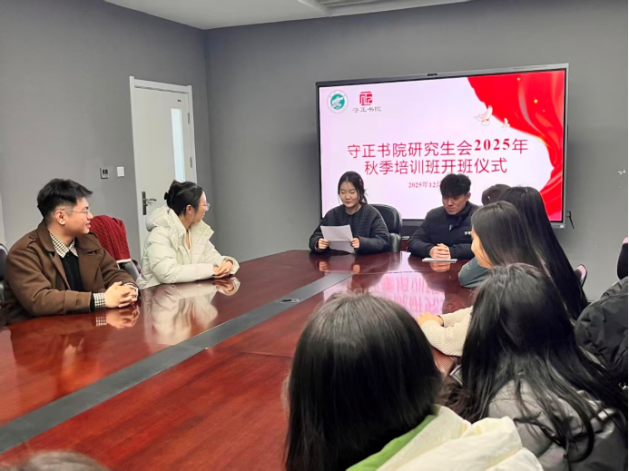 为深入学习贯彻党的二十大精神和习近平总书记关于青年工作的重要思想,落实高校研究生会改革要求,强化学生骨干的责任意识与服务能力,12月1日,宁夏大学守正书院研究生会2025年秋季培训班开班仪式在曾宪梓楼218会议室顺利举行。本次会议由守正书院执行主席孙涵、主席团成员罗嘉莹主持,研究生会全体成员参加。
